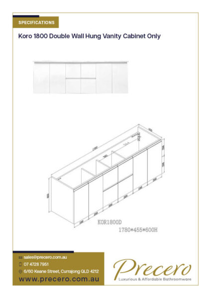 Koro 1800mm Waterproof Double Wall Hung Vanity Cabinet Only
