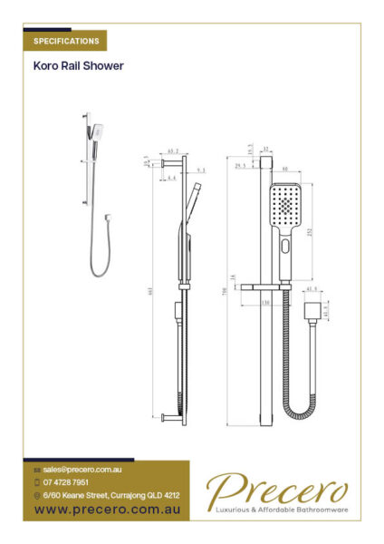The Koro range comes with a full brass rail shower and a 3 function handpiece. It is easy to use and comes with a 1.5 metre high pressure double wound stainless steel hose for durability.