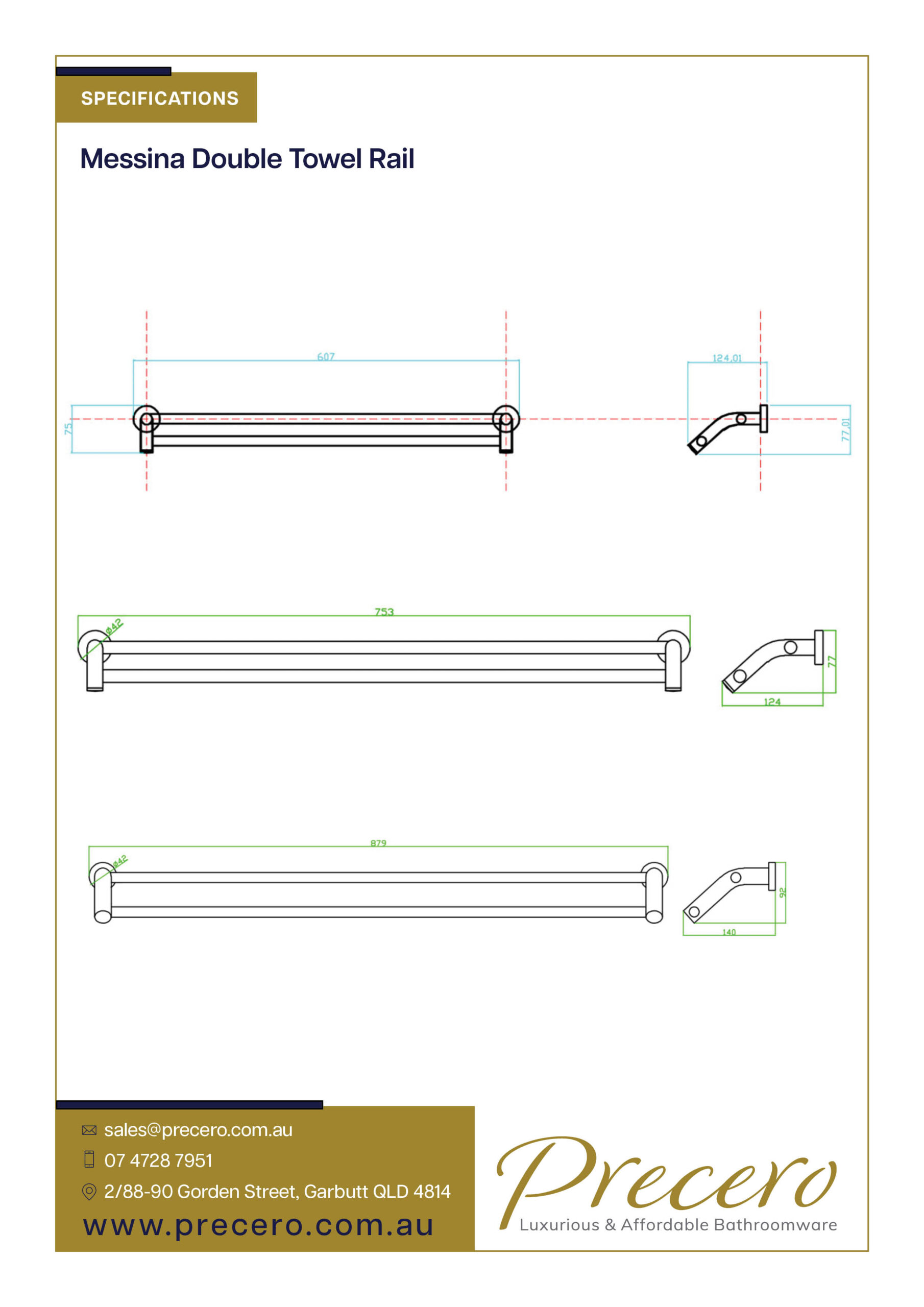 The Precero Messina Double Towel Rail will add style to your bathroom and is available in a variety of colours: