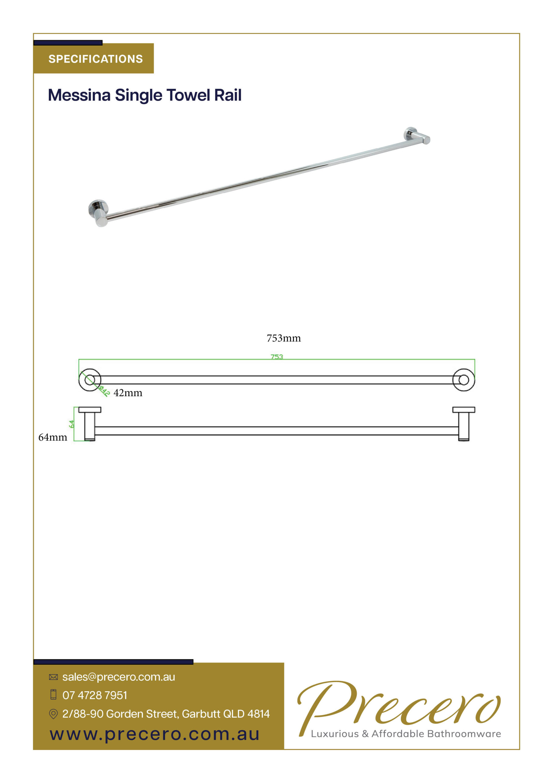 The Precero Messina Single Towel Rail will add style to your bathroom and is available in a variety of colours: