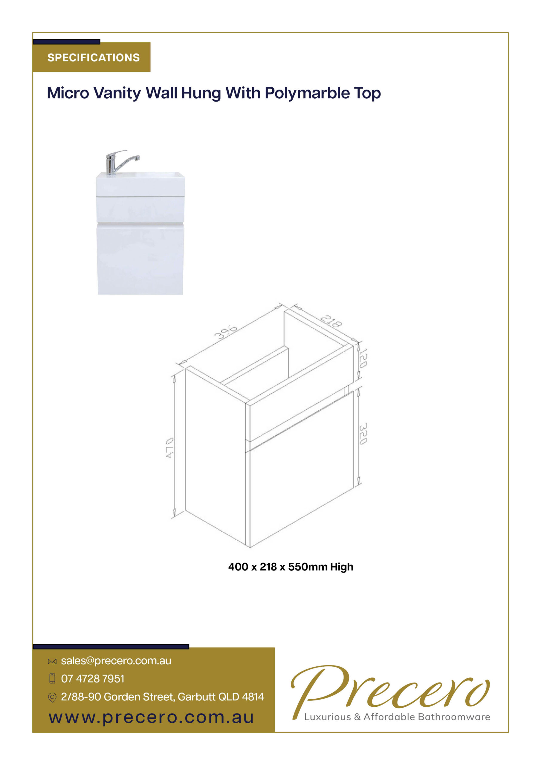 Micro Waterproof Vanity Wall Hung 450mm with Polymarble Top