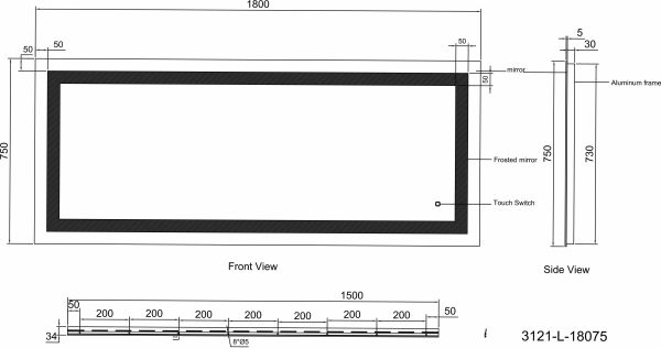 1800 x 750mm